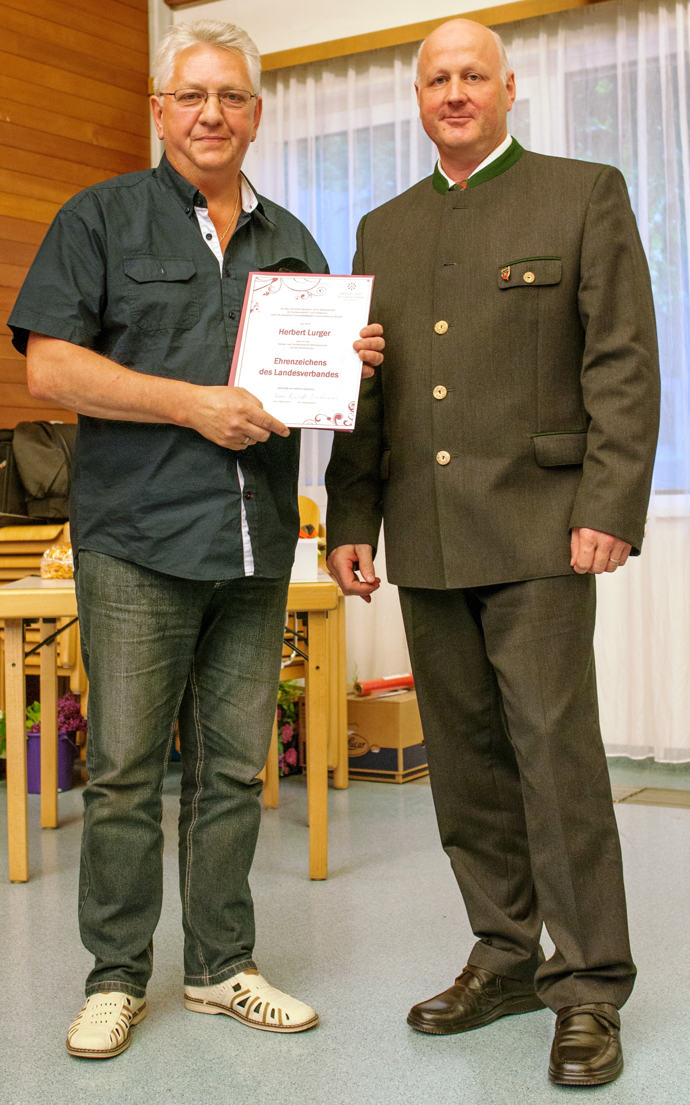 Im Rahmen der Muttertagsfeier des TV D’Linzer Holzknecht am 10. Mai überreichte Landesverbandsobmann Kons. Rudolf Birnbaumer das „Ehrenzeichen des Landesverbandes“ an Obmann Herbert Lurger.